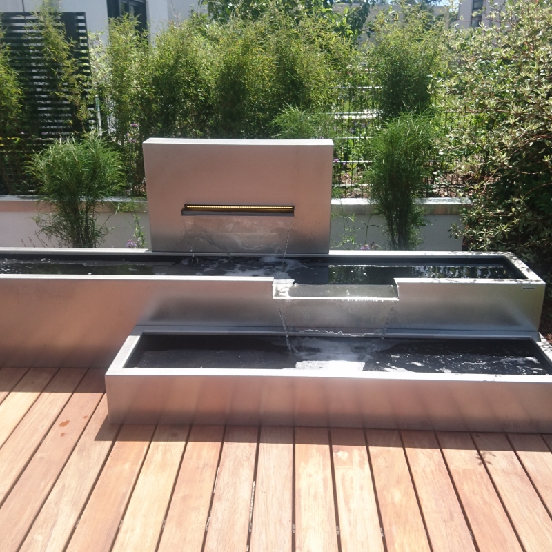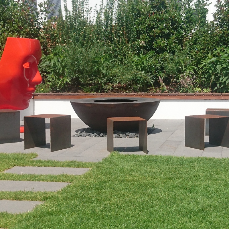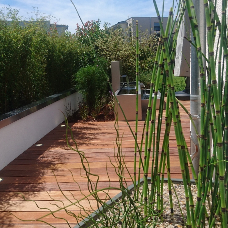 Planung und Auführung: Im Rahmen dieses Projektes wurde die komplette Neuanlage unter den Mottos klare und formale Struktur, Natursteine, üppige Bepflanzung, Freizeitwert realisiert.